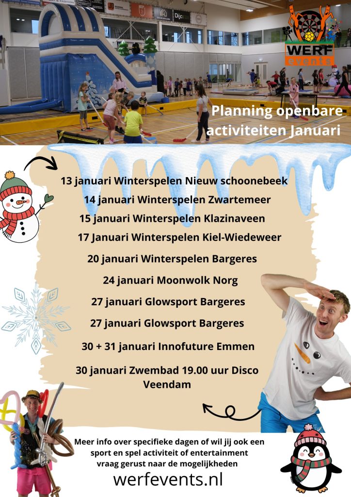 De meeste opdrachten voeren wij intern uit voor organisaties zoals verenigingen, scholen, bedrijven en andere instanties. Om bezoekers toch op de hoogte te houden van onze openbare opdrachten, hebben wij een overzicht samengesteld met de data waarop wij aanwezig zijn.