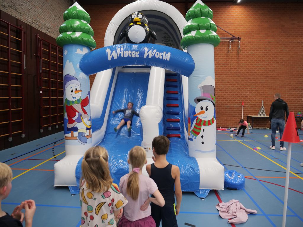 Onze winterglijbaan in winterthema is dé blikvanger voor winteractiviteiten in een sporthal, evenementenhal, school of bedrijfslocatie. De glijbaan zorgt voor sfeer, beleving en volop plezier voor jong en oud tijdens: